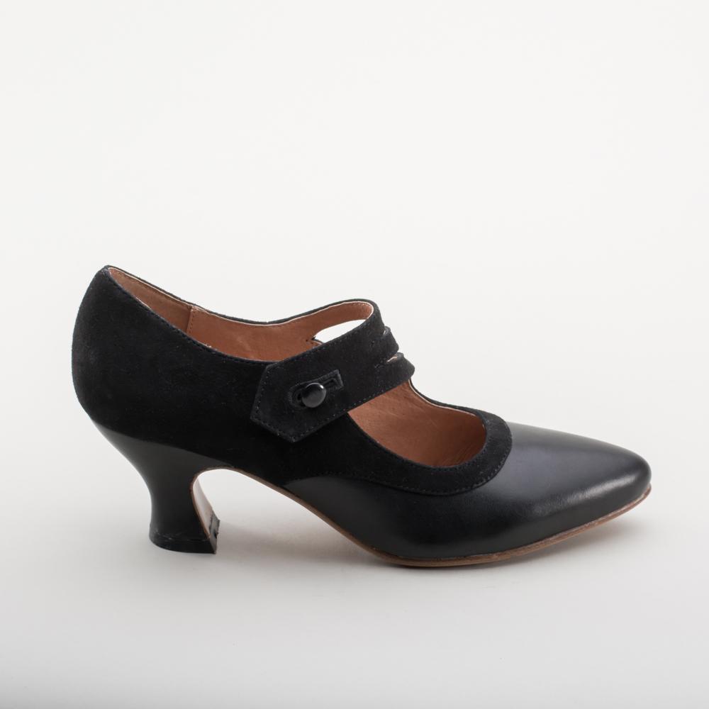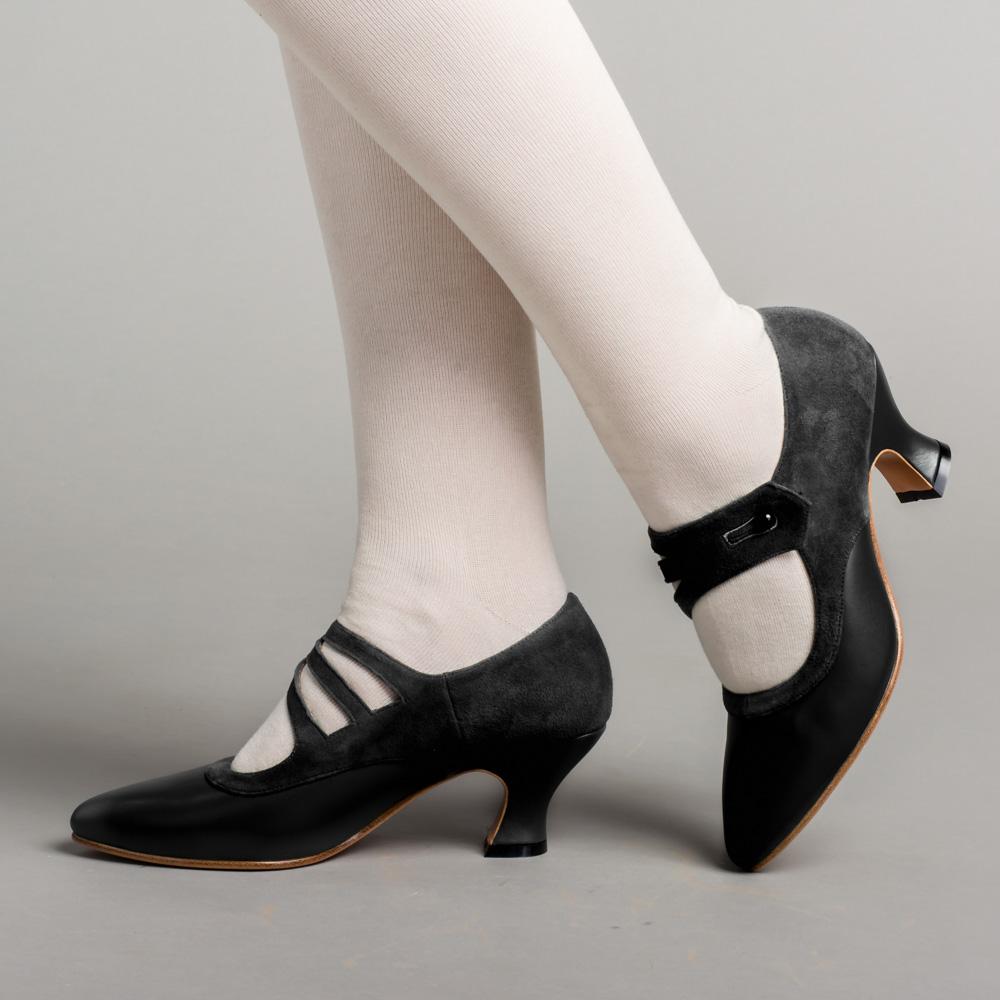 Developed directly from an original 1900s design, the Mae feature tone-on-tone suede and smooth leather with a sophisticated Mary Jane strap crossing elegantly over the instep. The 2.25 in / 5.7 cm French heel is delicate and well-balanced, paired with a pointed toe to create the perfect Edwardian and 1920s silhouette.