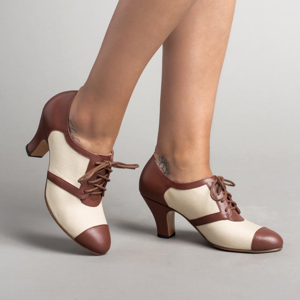 Vintage shoes and boots by American Duchess. Our extensive collection of beautiful recreation shoes and boots from the 1920s through 1950s will bring classic silhouettes and that quintessential vintage style to your wardrobe. Choose from a variety of pumps, oxfords, boots and sandals, perfect for true vintage outfits and for those looking to add a touch of vintage flair to their everyday attire.