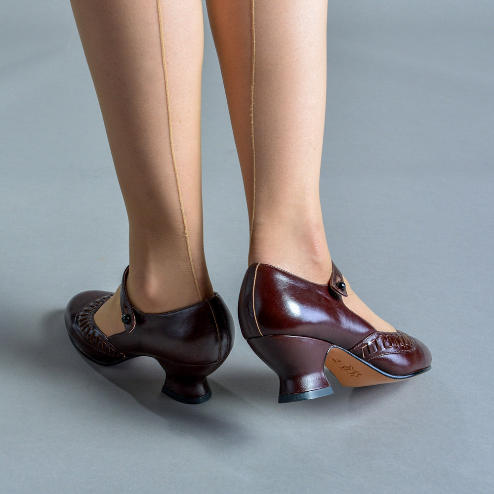 Vintage shoes and boots by American Duchess. Our extensive collection of beautiful recreation shoes and boots from the 1920s through 1950s will bring classic silhouettes and that quintessential vintage style to your wardrobe. Choose from a variety of pumps, oxfords, boots and sandals, perfect for true vintage outfits and for those looking to add a touch of vintage flair to their everyday attire.