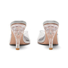Put some spring in your step with Grace, a dazzling 1950s reproduction mule. These slip-on sensations are made with a period-accurate elasticated insole, which helps secure the shoe to the foot. Grace features our custom, one-of-a-kind, clear 1950s heel, bedecked with intricate etchings and a sparkling rhinestone. Choose from uppers in supple smooth leather, quintessential 1950s clear vinyl, or seductive hair-on cheetah print. Grace is fitted with a lightly treaded rubber sole, making her perfect for wearing poolside. Wherever you go, Grace is sure to turn heads!