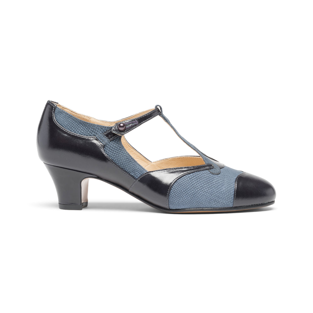 PRE-ORDER Doris 1920s Pumps Wide (Navy/Black)