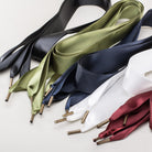 Change up the look of your oxfords with a beautiful set of satin ribbon shoe laces in a variety of colors to mix and match. Made of soft satin ribbon with metal aiglets, these pretty satin shoe laces will fit most lace-up oxfords with four or five sets of eyelets, including Londoner, Lucille, Bernadette, Claire, Evelyn, and Marlene.